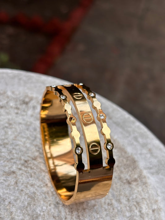 Gold Triple Layer Bangle with Stone Detailing