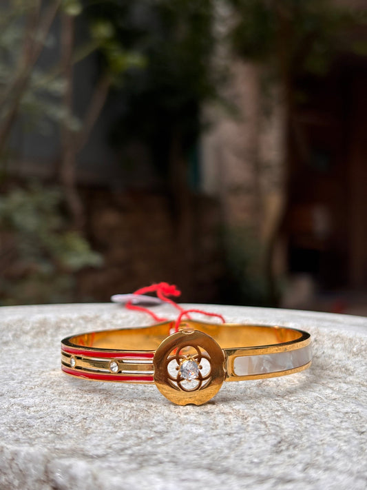 Gold Plated White Inlay & Crystal Centerpiece Bracelet