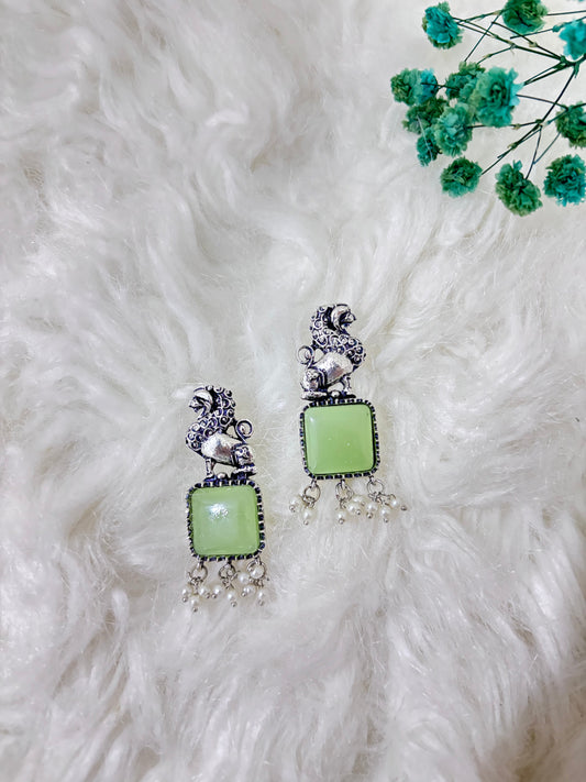 Royal Monalisa Pink + Green | Oxidised Earring | Combo