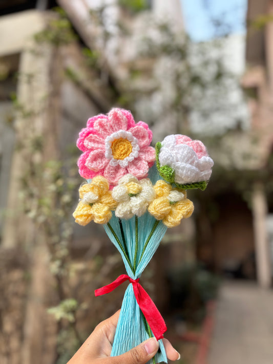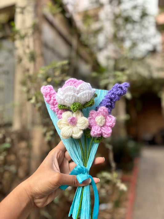Crochet Bouquet | Multi shade Rose, Lavender Stick, Wood Sorrel Flowers