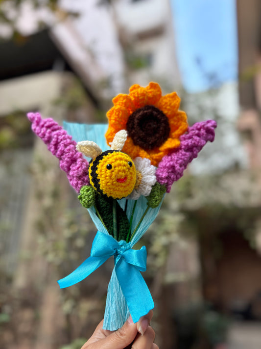 Crochet Bouquet | Sunflower, Daisy, Wood sorrel flower, Honeybee Stick