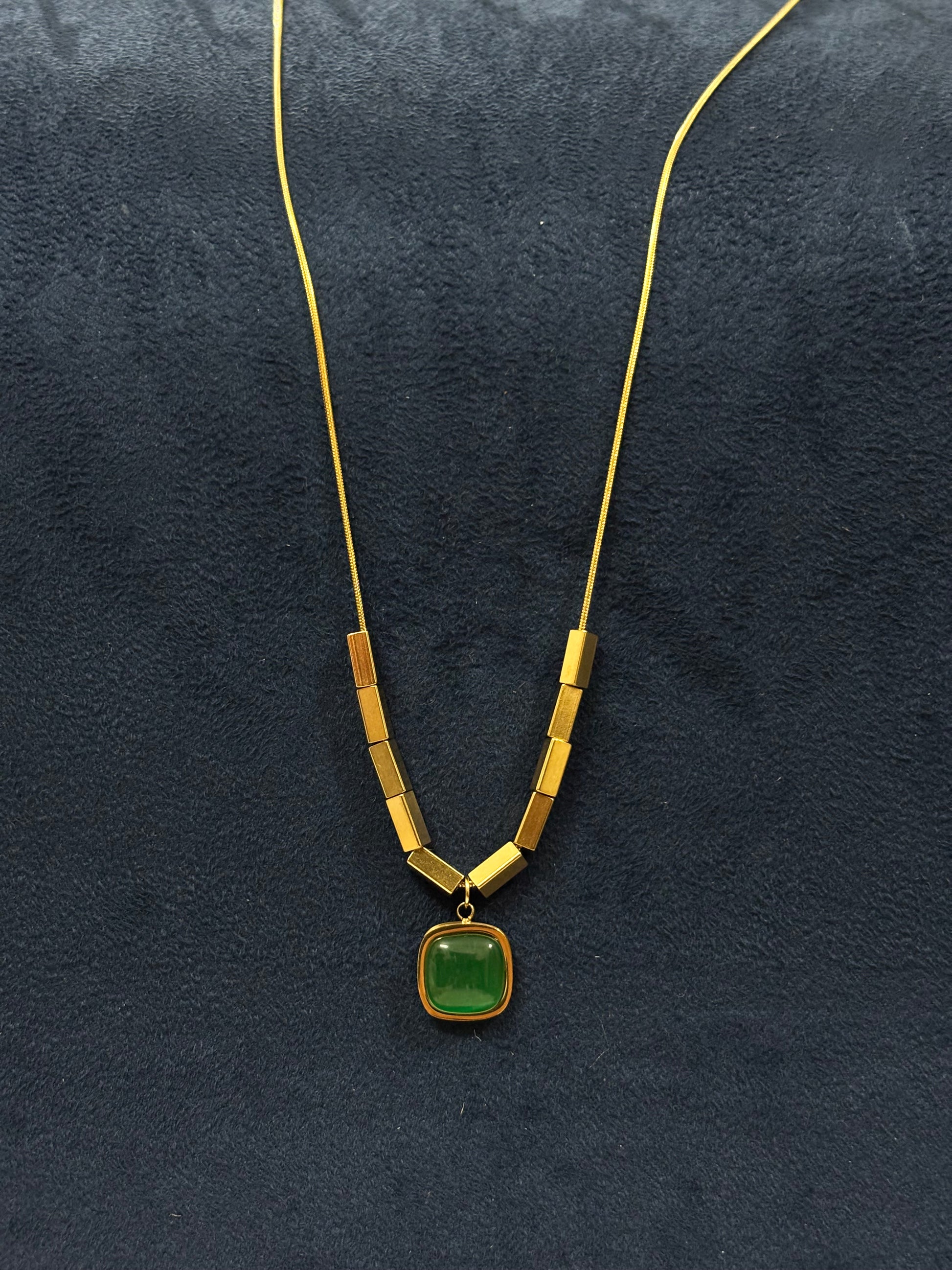 Elegant with a modern twist, this anti-tarnish necklace features a vibrant green stone paired with stylish golden rings for a chic layered look. Waterproof, sweat-resistant, and lightweight with lasting shine, it’s perfect for everyday wear or gifting, available exclusively on InclusiCart.com. Your everyday elegance begins here.