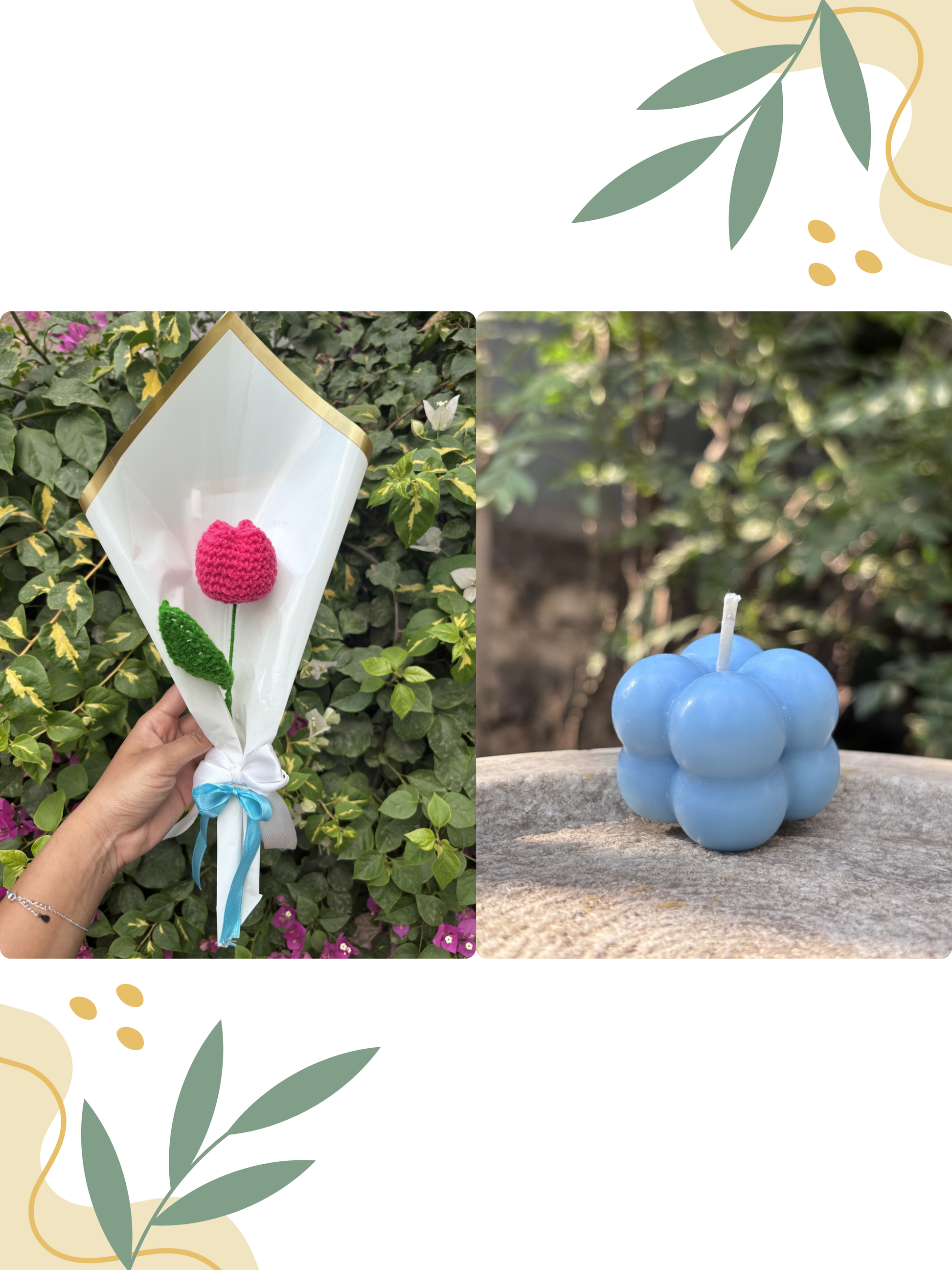Yellow Tulip Crochet | Shaded Bubble Scented Candle | Combo