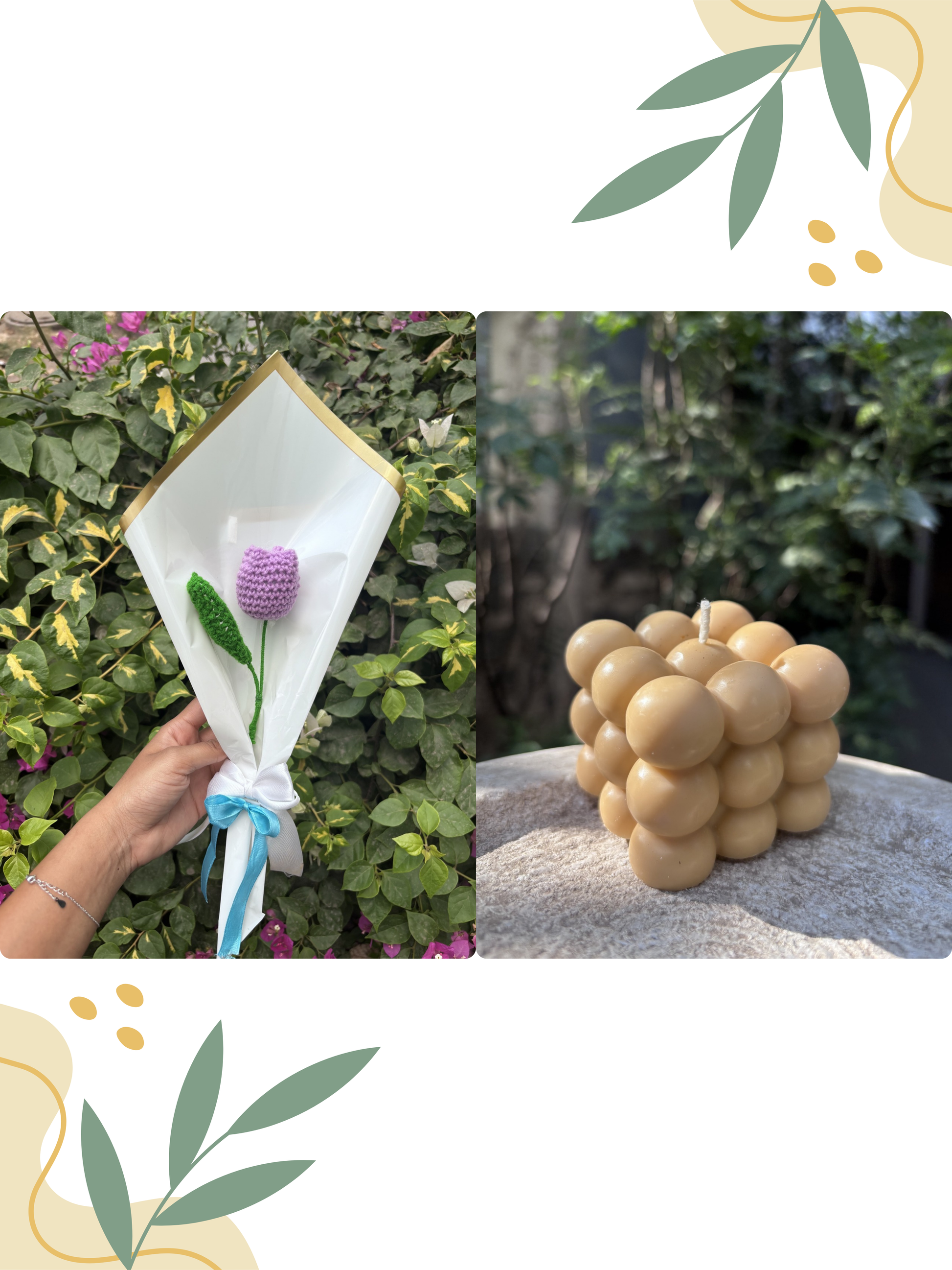 Yellow Tulip Crochet | Shaded Bubble Scented Candle | Combo