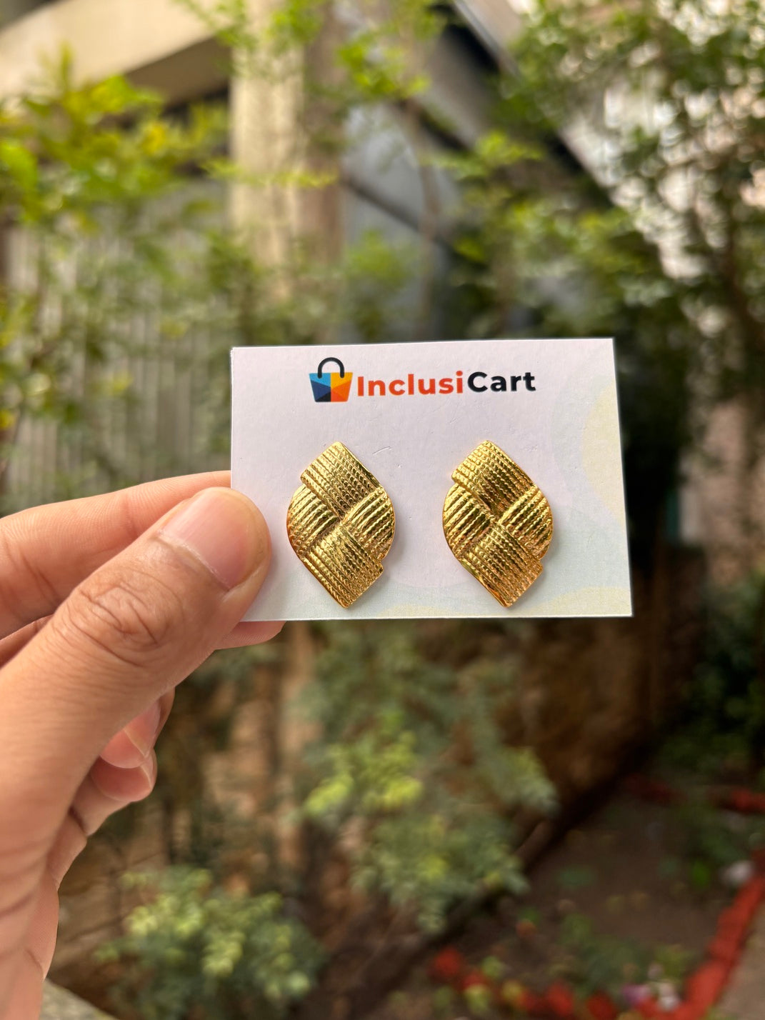 Elevate your style with our Textured Leaf Anti-Tarnish Gold Stud Earrings, crafted with a chic woven pattern that adds depth and sophistication. Their unique leaf-inspired design makes them perfect for pairing with both ethnic and western outfits. With premium anti-tarnish coating, these earrings retain their shine and last longer, making them an ideal choice for everyday elegance or festive wear.
