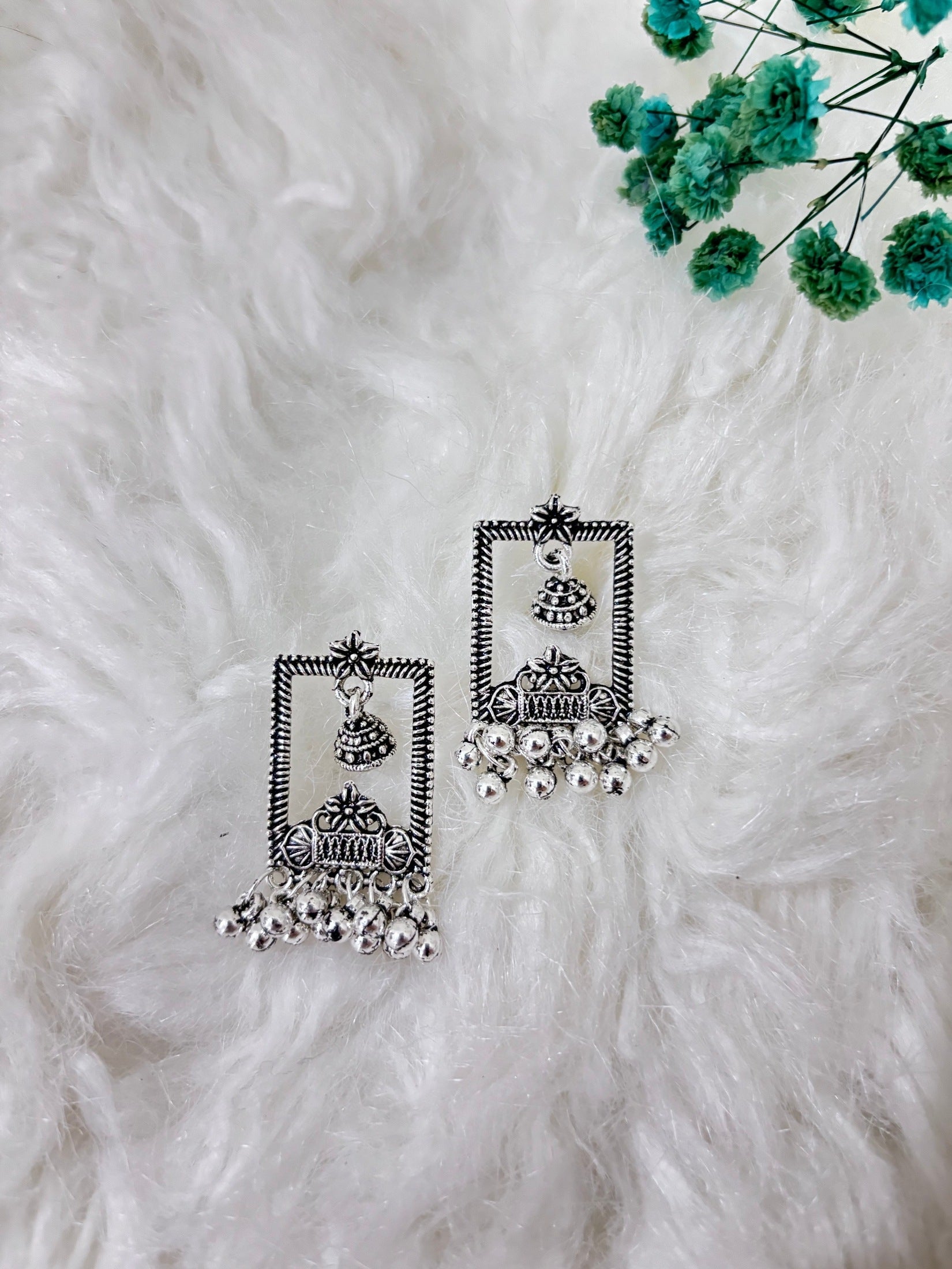 Trendy Silver | Square Vintage | Round Vintage | Oxidised Earrings | Combo