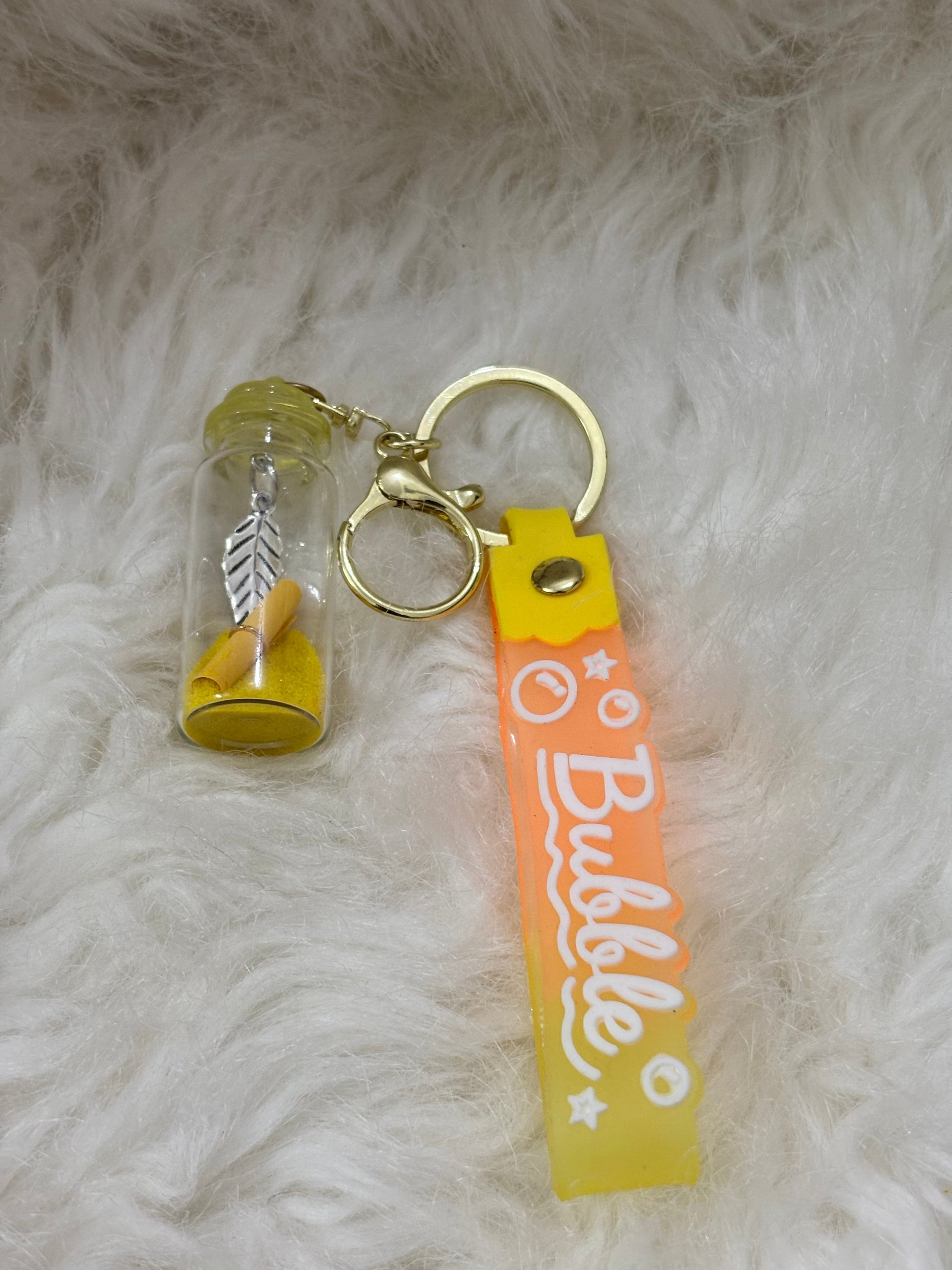 Yellow Hidden Message Glass Bottle Keychain